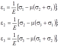 , выражения для деформации в направлении действия главных напряжений будут иметь вид: