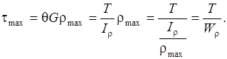 Таким образом, максимальное касательное напряжение в поперечном сечении бруса равно частному от деления крутящего момента на полярный момент сопротивления.