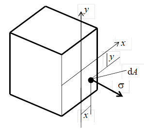 Статическая задача о плоском изгибе. Изгибающий момент в сечении представляет собой сумму моментов всех элементарных внутренних нормальных сил