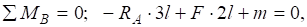 . Составим уравнения равновесия моментов всех внешних сил относительно опор