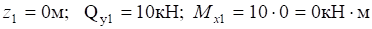 Проведем сечения на каждом характерном участке и определим значения поперечной силы