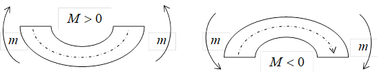 Изгибающий момент будет положительным, если при действии момента внешних сил балка искривляется выпуклостью вниз (рис. 25).