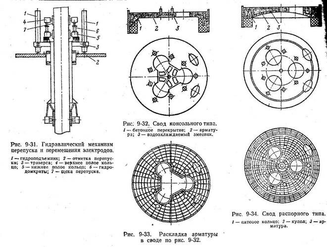 Свод закрытой печи может быть выполнен консольного (рис. 9-32) или распорного (рис. 9-33 и 9-34) типа.