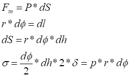 Расчет оболочковых конструкций, имеющих достаточно большое отношение радиуса к толщине, ведут по безмоментной теории Лапласа. Распределение σ по толщине листа равномерное, соответственно в конструкции не возникает изгибающих моментов. Гипотеза дает хороший результат в случае, если диаметр обечайки значительно больше толщины.