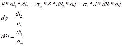 Рассмотрев равновесие элемента оболочки (Рис. 13.1 а) запишем: