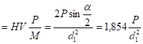 При испытании на твердость по методу Виккерса (ГОСТ 2999-75) в поверхность материала вдавливается алмазная четырехгранная пирамида с углом при вершине α=136º (рис.2.3, б). После снятия нагрузки вдавливания измеряется диагональ отпечатка d1 . Число твердости по Виккерсу HV подсчитывается как отношение нагрузки Р к площади поверхности пирамидального отпечатка М:
