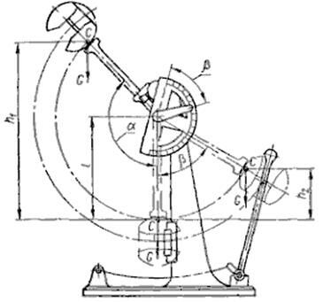 На Рис. 3.6 показан маятниковый копер и направление удара бойка маятника. Разность высот положения маятника ло и после удара позволяет вычислить работу А, израсходлванную на разрушение образца.