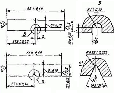 Рис. 3.7 Образцы для испытаний на ударный изгиб