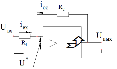 Фаза выходного сигнала отличается от фазы входного сигнала на 180°