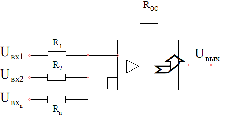 Uвых= - (Uвх1 +  Uвх2+…+ Uвхn )