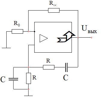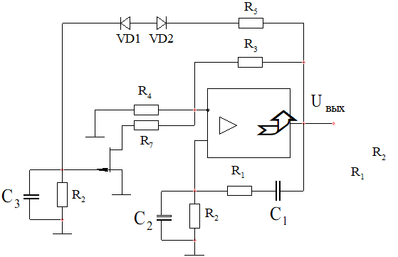 Схема генератора синусоидальных колебаний с мостом Вина: