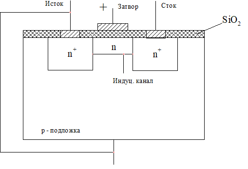 При увеличении напряжения на затворе образуется индуцированный канал.