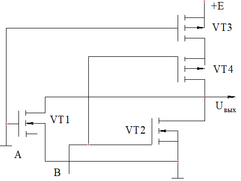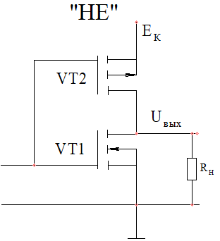 Пусть появился входной сигнал (положительный), в этом случае транзистор VT1 открывается, поскольку входное напряжение на затворе больше, чем пороговый уровень.