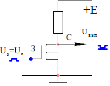 Вследствие высокого сопротивления канала закрытого транзистора и низкого сопротивления канала открытого транзистора, выходное сопротивление значительно уменьшается , и приблизительно равен нулю.