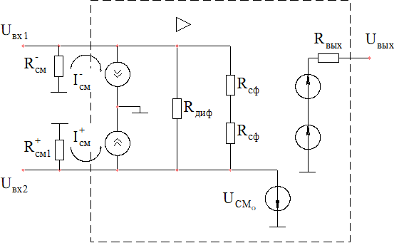 Входные параметры – Rвхд, Rвхсф, Uвх сф доп, Uвх д доп,Uсм о, Iсм, Δ Iсм , ΔΔ Iсм;