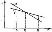 Изменение свободной энергии G чистого металла в жидком (а) и твердом (б) состояниях в зависимости от температуры Т