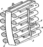 На МНЛЗ применяют кристаллизаторы трех типов: сборные, блочные и гильзовые. Наиболее широкое распространение получили сборные кристаллизаторы, состоящие из четырех медных рабочих стенок, каждая из которых крепится шпильками к жесткой стальной плите (рис.). Рабочие стенки выполняют из толстых (50—70 мм) медных пластин (при малой толщине (10—20 мм) происходит их коробление, приводящее к образованию продольных трещин в корке слитка). Стойкость кристаллизаторов составляет 100—150 большегрузных плавок.