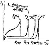 Тепловой пробой. При нарушении теплового баланса, когда вследствие недостаточного теплоотвода прирост подводимой к коллекторному переходу мощности UКБIк не компенсируется соответствующим приростом отводимой мощности, в транзисторе имеет место тепловой пробой. При этом температура перехода неограниченно растет, увеличиваются ток коллектора и подводимая мощность UКБIк , в результате транзистор перегревается и выходит из строя.