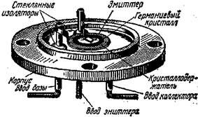 Сплавные транзисторы. В тщательно отшлифованную пластинку легированного сурьмой монокристалла германия, имеющую обычно размер