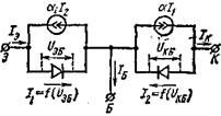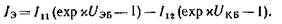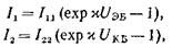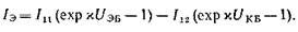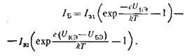 где аi; – коэффициент передачи тока коллектора при инверсном включении транзистора, т. е. при подаче на коллектор прямого, а на эмиттер — обратного напряжений; а — коэффициент передачи тока эмиттера при обычном включении транзистора. Токи диодов определяются уравнениями