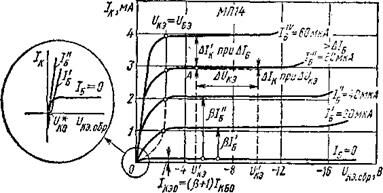 Расчет и эксперимент показывают, что UКЭo обычно в два-три раза ниже, чем UКБо (кривая IБ = 0 на рис. 3.28).