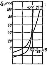 Входные характеристики транзистора в схеме с общим эмиттером при различных температурах показаны на рис.3.23. При повышении температуры транзистора увеличиваются как прямой, так и обратный токи базы,