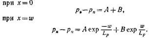 Подставив найденные значения А и В в уравнение (3.5), получим выражение для концентрации носителей заряда в базе транзистора: