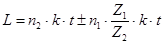 Движение складывается на реечной шестерне с числом зубьев Z, L1 – перемещение оси шестерни, L2 – перемещение рейки.