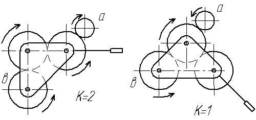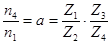 где а - абсолютное значение передаточного отношения, которое зависит от числа зубьев, к – число промежуточных осей.