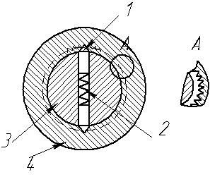Вал 3 имеет сверление, в него вставлены штыри 1. Вал 3 при помощи штырей сцепляется с зубьями втулки 4 и передает крутящий момент. Усилие этого сцепления регулируется пружиной 2.