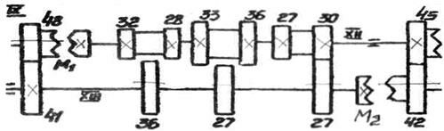 Механизм шестерен с кулачковыми муфтами.