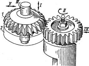 Цепь дифференциала сообщает дополнительное вращение заготовке, необходимое для предотвращения срезания ее зубьев, при осуществлении тангенциальной подачи фрезы. Дополнительное вращение заготовки должно быть согласовано с тангенциальной подачей так, чтобы при перемещении фрезы вдоль своей оси на шаг зацепления,заготовка получила бы дополнительный поворот на один зуб.