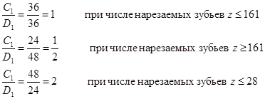 В связи с тем, что диапазон чисел зубьев колес, нарезаемых на станке, весьма большой, гитара обкатки (деления) составлена из двух гитар: гитары переключения С1 – D1 и собственно гитары обкатки a – b – c – d. Гитара переключения служит для расширения диапазона передаточных отношений цепи обкатки и, в свою очередь, может иметь следующие передаточные отношения: