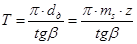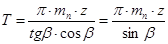 Обычно в чертеже на колесо задают не шаг Т, а угол наклона винтового зуба β. Выразим шаг Т через этот угол, модуль и число зубьев. Если развернуть винтовую линию на плоскость (Рис.5), то видно, что