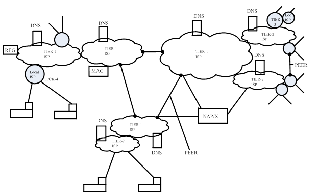 Все области верхнего уровня в обязательном порядке связываются через магистральный уровень.