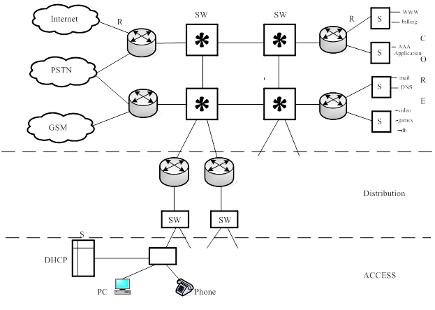 в) отказоустойчивость – способность сети скрывать от пользователя отказ отдельных ее элементов. Отказ ведет к деградации сети (например, снижение SIR, или повышению L), но сеть остается, тем не менее, работоспособной.