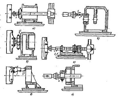 б) станки с головками колокольного типа с переставными шарнирными шпинделями (рис. 11.5, б) для одновременной обработки нескольких отверстий;
