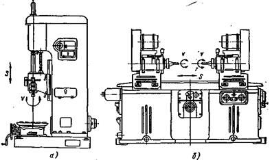 Рис. 11.9. Алмазно-расточные станки: а — вертикальный; б — горизонтальный