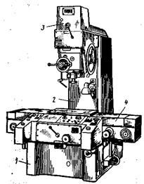 1 — станина; 2 — стойка; 3 — шпиндельная бабка; 4 — стол
