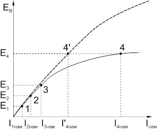 Ток намагничивания трансформатора тока зависит от величины его вторичной ЭДС EВ. Кривая намагничивания EВ=f(Iнам).