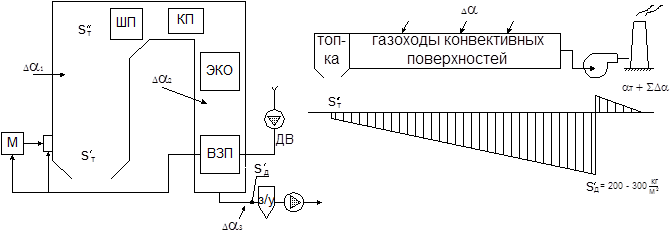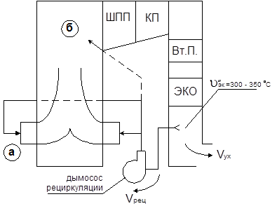 3) Для ¯ шлакования ШПП и 1ст. КПП (за счет рециркуляции газов в верх (б)).
