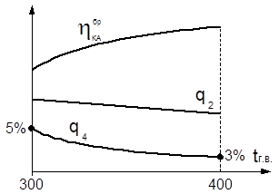 5) Присосы за газоходов котла на экономичность не влияют, а влияют только на нагрузку дымососа (Da3): с Da ® Vг ® Эд.