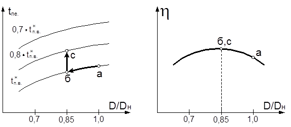 1) Для расширения диапазона регулирования tпе при ¯¯D