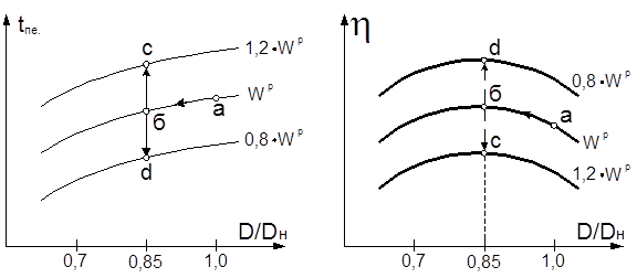 Изменение tг.в. – результат изменения режима работы ВЗП в виду изменения Dt, Wг, Wв, К.