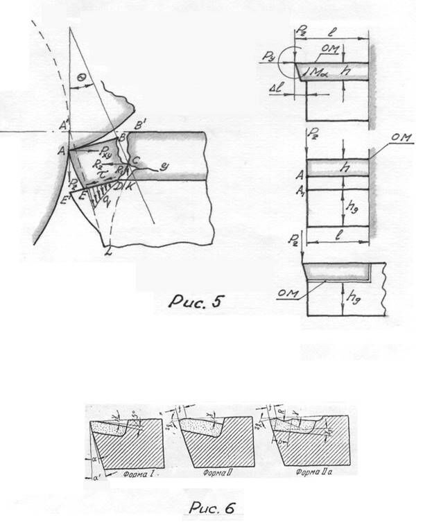 Габаритные размеры резца определяются длиной державки, выбираемой в зависимости от надежности закрепления, и её сечением, которое стандартизировано и может быть квадратной формы (4х4; 6х6; 10х10; 12х12; 16х16; 20х20; 25х25; 32х32; 40х40 мм2); прямоугольной (10х16; 12х20; 16х20; 16х25; 20х25; 20х32; 25х32; 25х40; 32х40; 32х50; 40х50; 50х63 мм2) и круглой диаметром от 10 до 40 мм. Высота державки определяется по соответствующему размеру станка или может быть ориентировочно рассчитана на прочность под действием изгибающей силы Рz. Правильней рассчитывать прочность пластины по предлагаемым схемам (рис.5.).