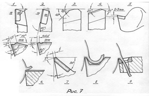 Попытки повысить эффективность токарной обработки приводит к созданию различных конструкций резцов, рабочие части некоторых из них приведены на рис.7.