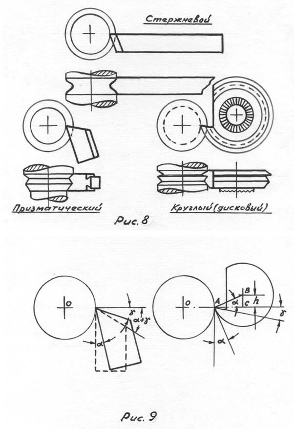 Особенностью фасонных резцов является то, что задний угол в процессе резания образуется у них специальной установкой на станке (рис. 9)