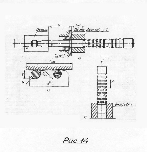 По способу приложения силы к инструменту – растягивающая или сжимающая – различаются протяжки (рис.14) и прошивки.