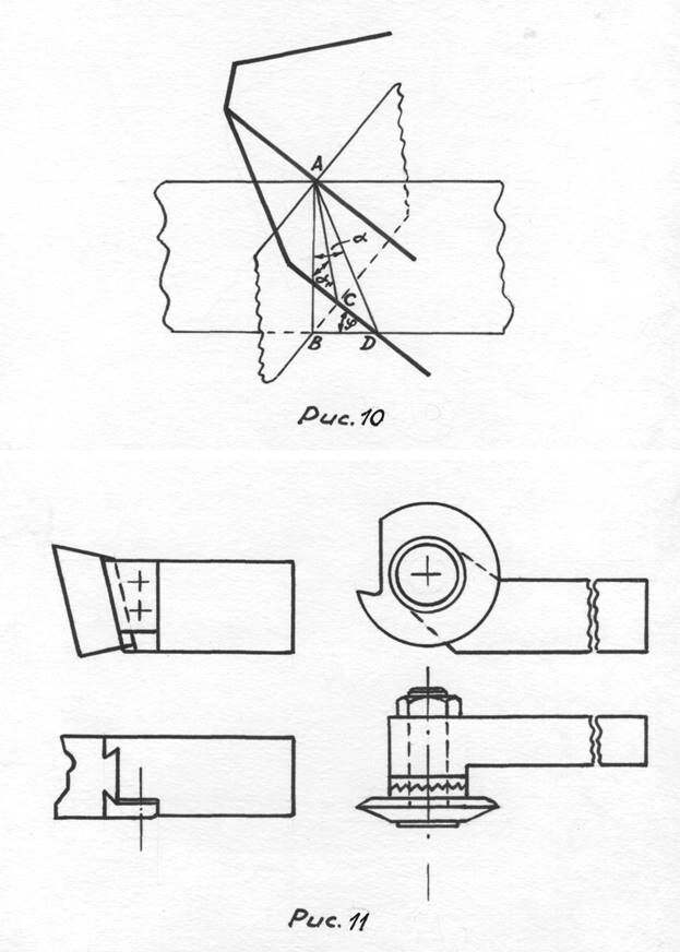 Призматический резец поворачивается на величину заднего угла: этот поворот обеспечивает специальная конструкция державки.