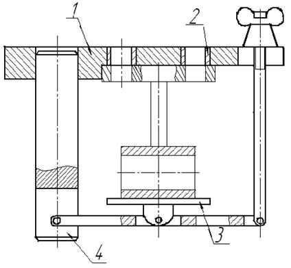 На рис.3 показан кондуктор, который в производстве имеет название кондуктор типа “книжка”: состоит из кондукторной плиты 1 с ножками 4, механизм закрепления содержит качалку 3, обеспечивающую направление усилия прижима по нормали к поверхности плиты.